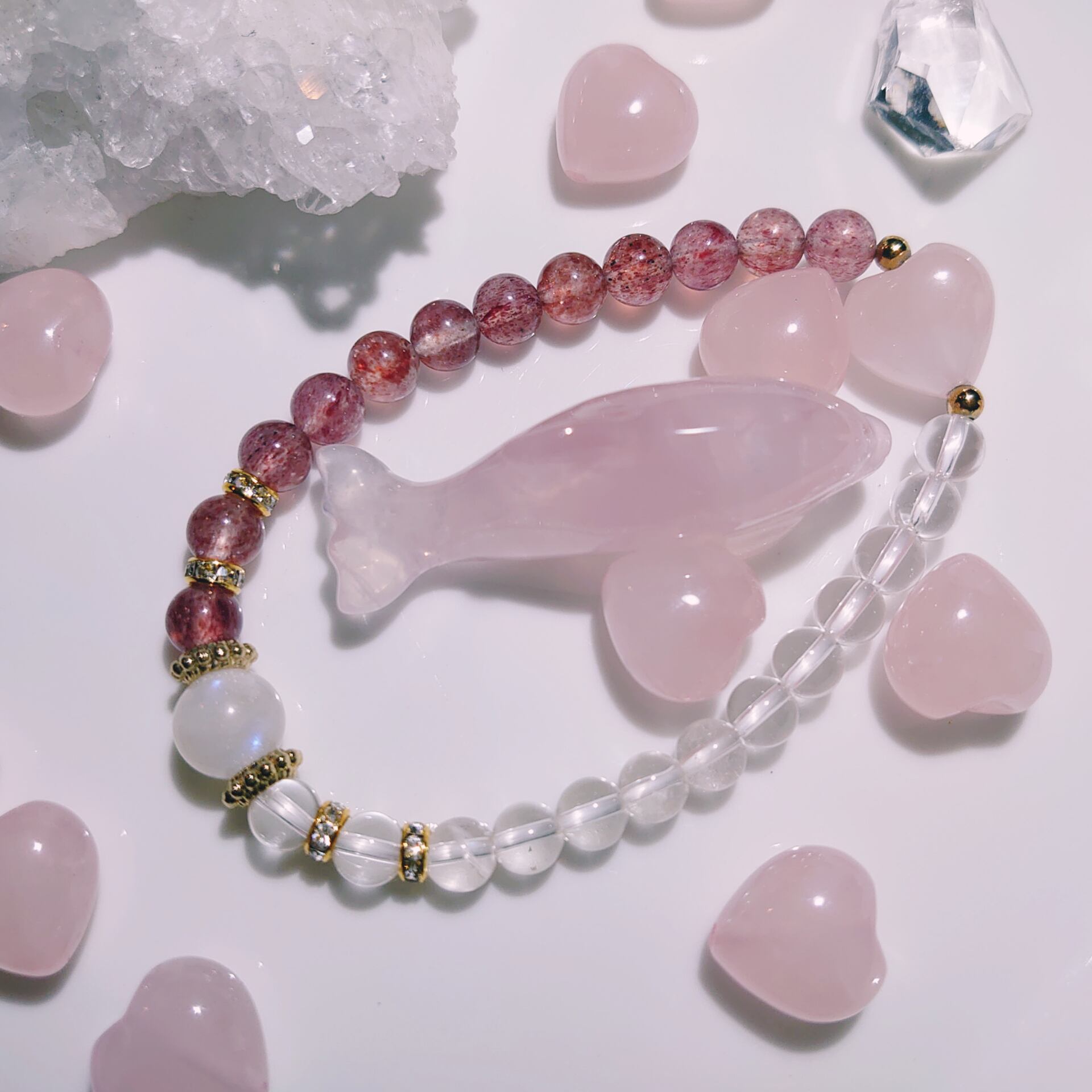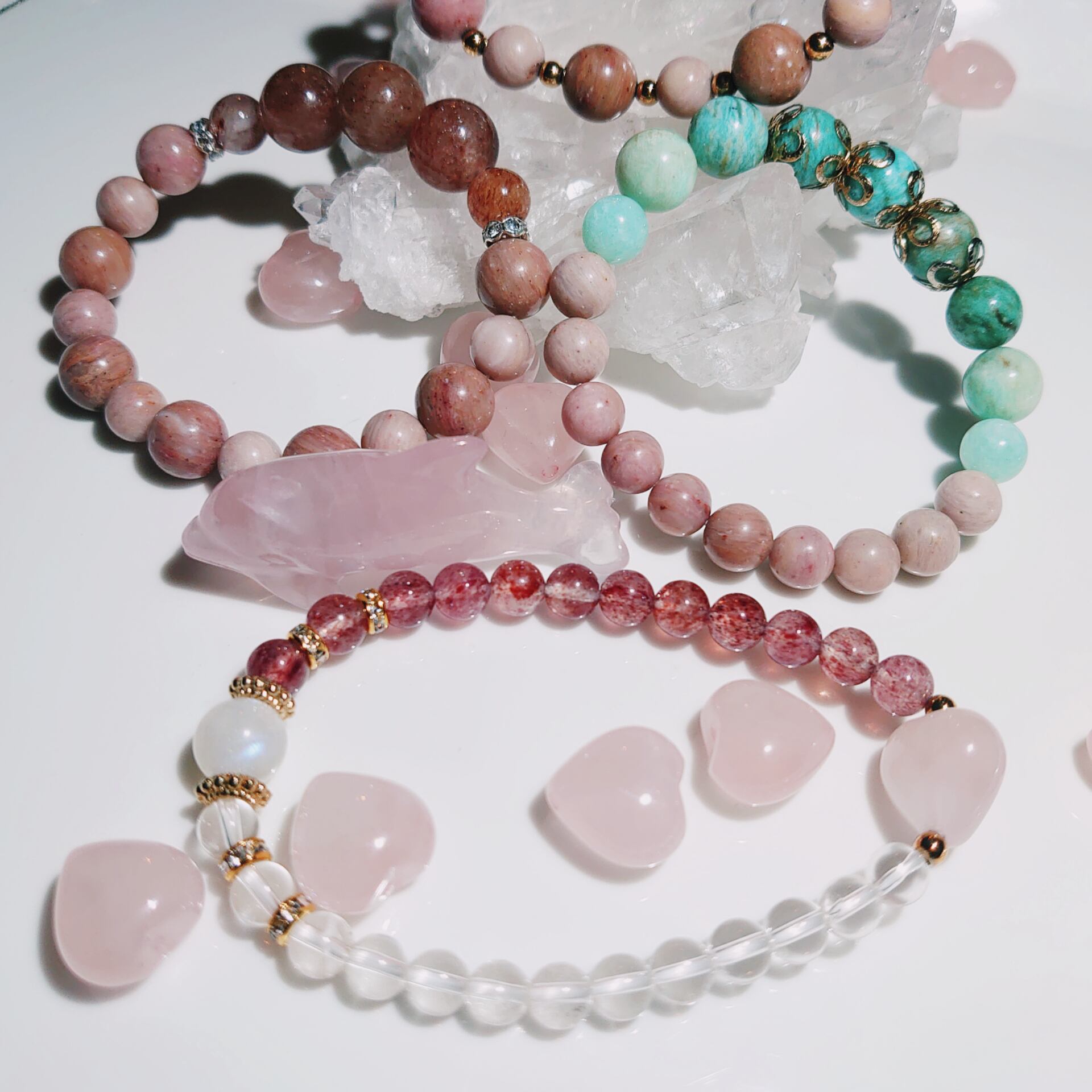 使用石:ローズクォーツ、レッドアベンチュリン、ブルームーンストーン、水晶