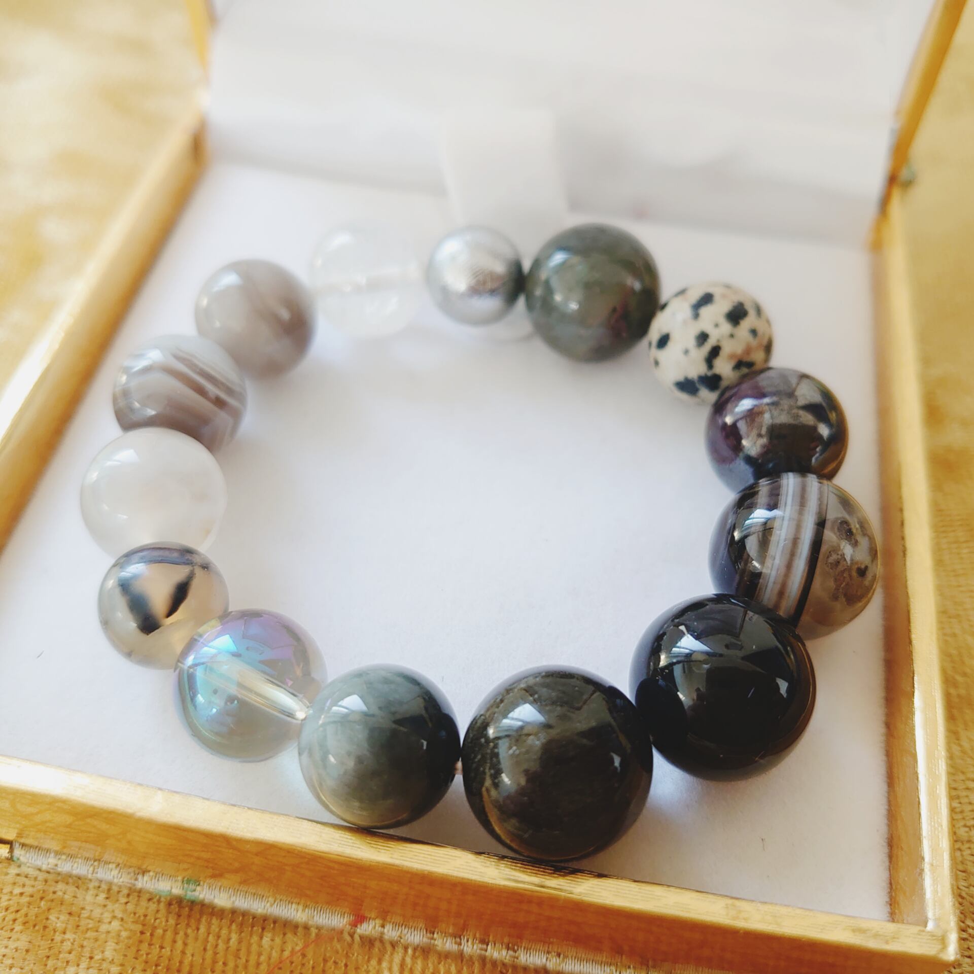 使用石:ギベオン、ヘマタイト共生スギライト、ゴールデンオブシディアン、レムリアンシードクリスタル、瑪瑙各種、ダルメシアンジャスパー、コスモオーラ