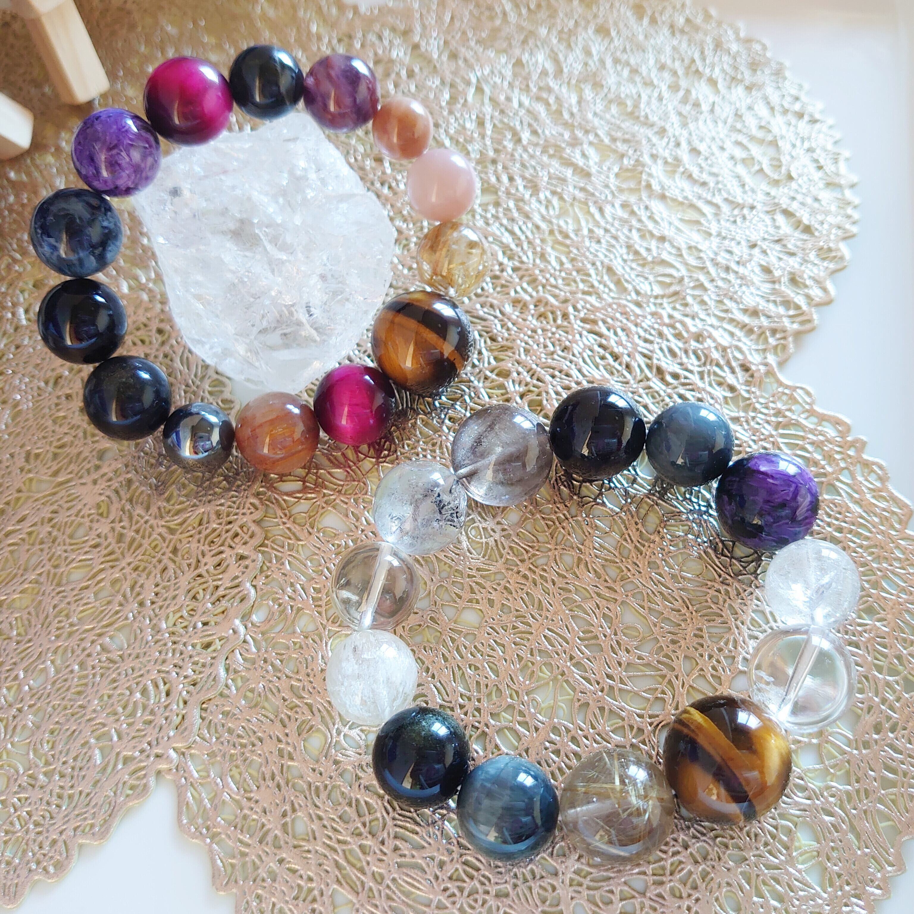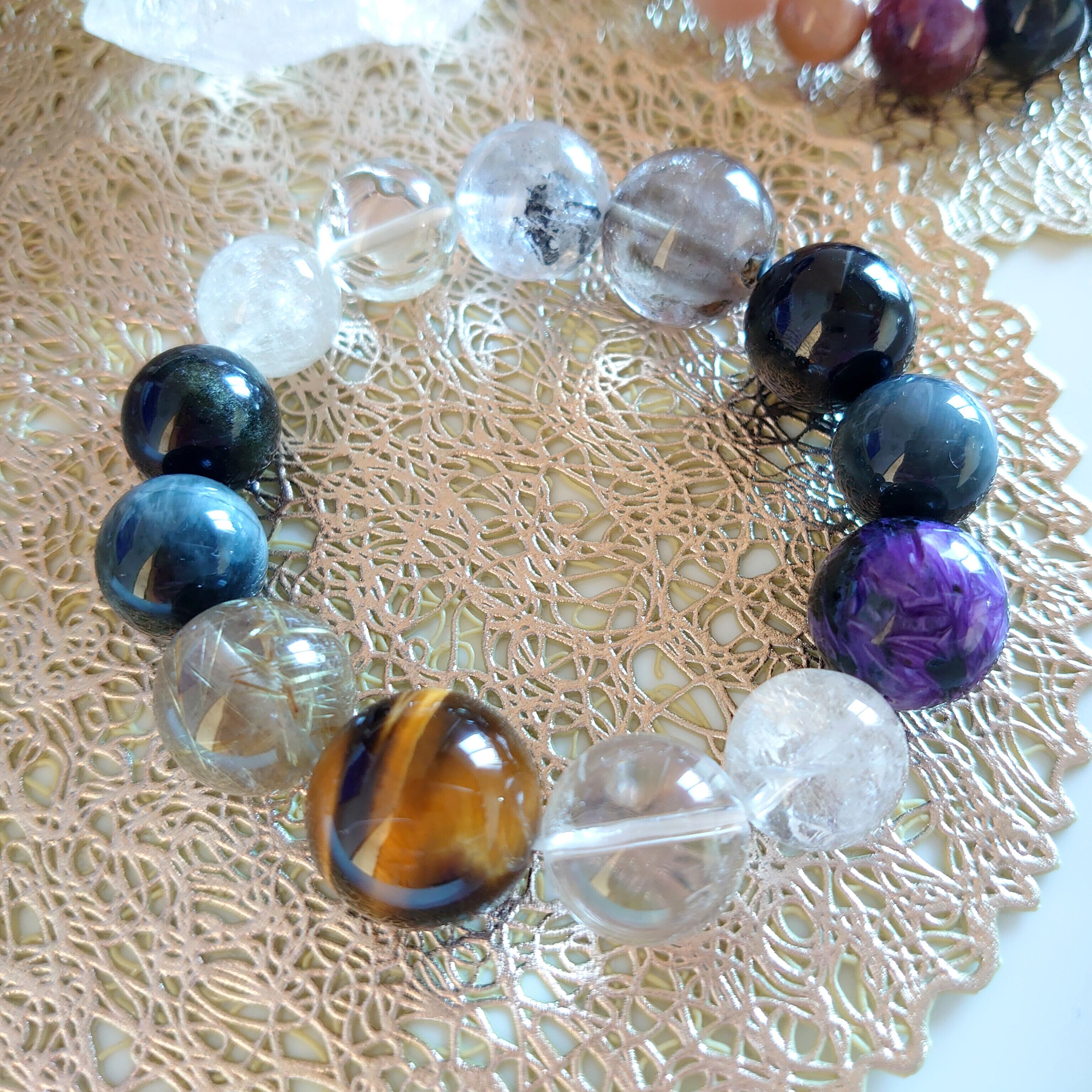 使用石:タイガーアイ、イーグルアイ、ハイパーシーン、ゴールデンオブシディアン、チャロアイト、骸骨水晶、レムリアンシードクリスタル、ルチルクォーツ