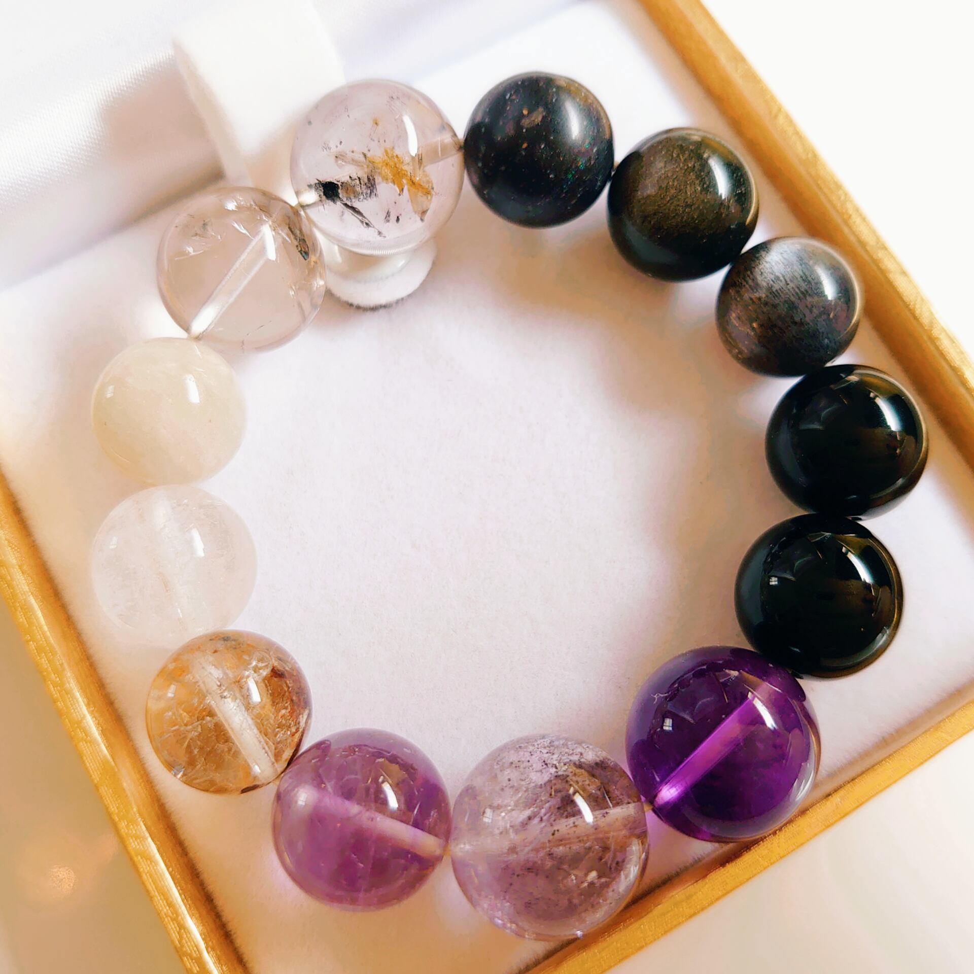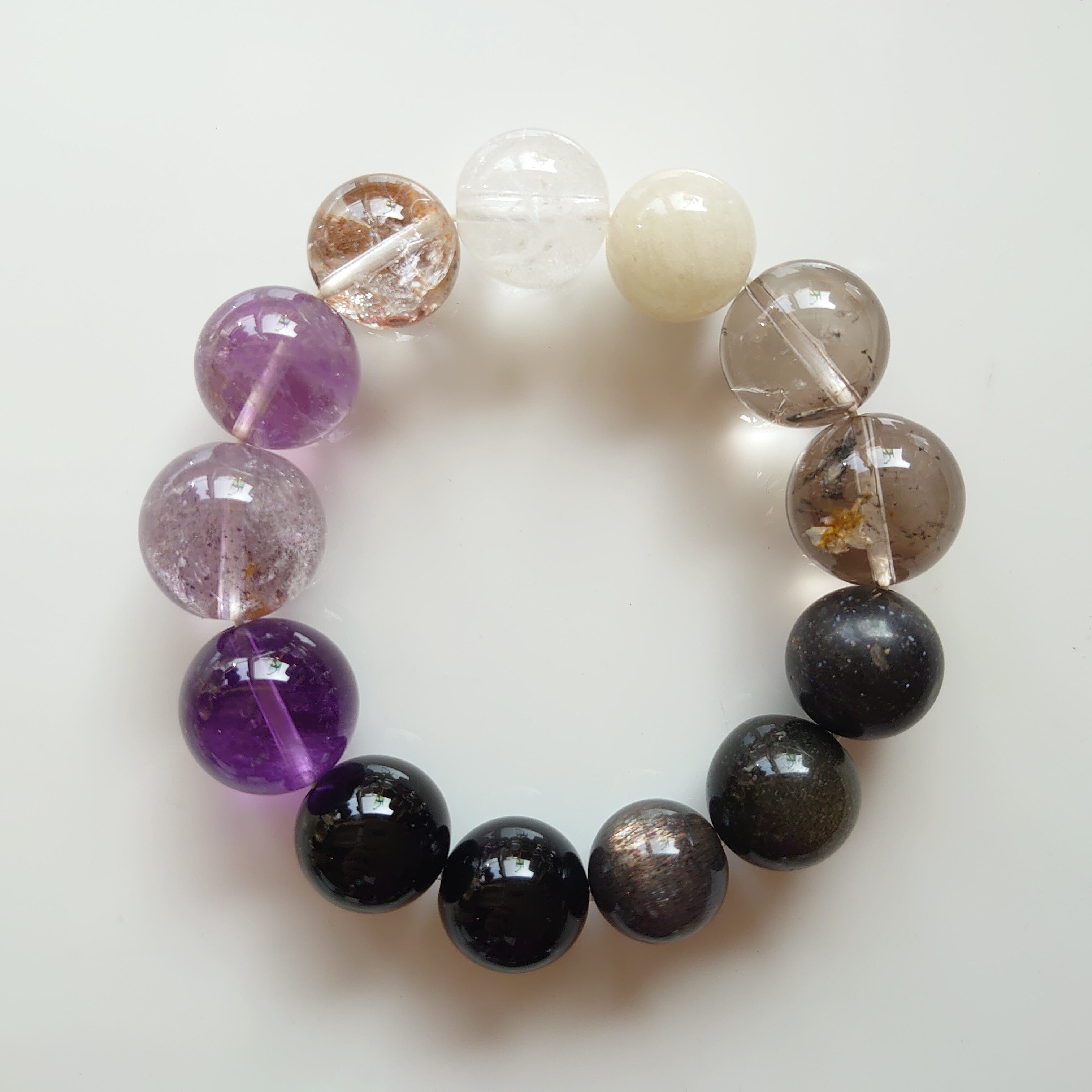 使用石:リビアングラス、レムリアンシードクリスタル、アメトリン、アメジスト、モリオン、オニキス、ブラックサンムーンストーン、ゴールデンオブシディアン、ブラックオパール、スモーキーエレスチャル